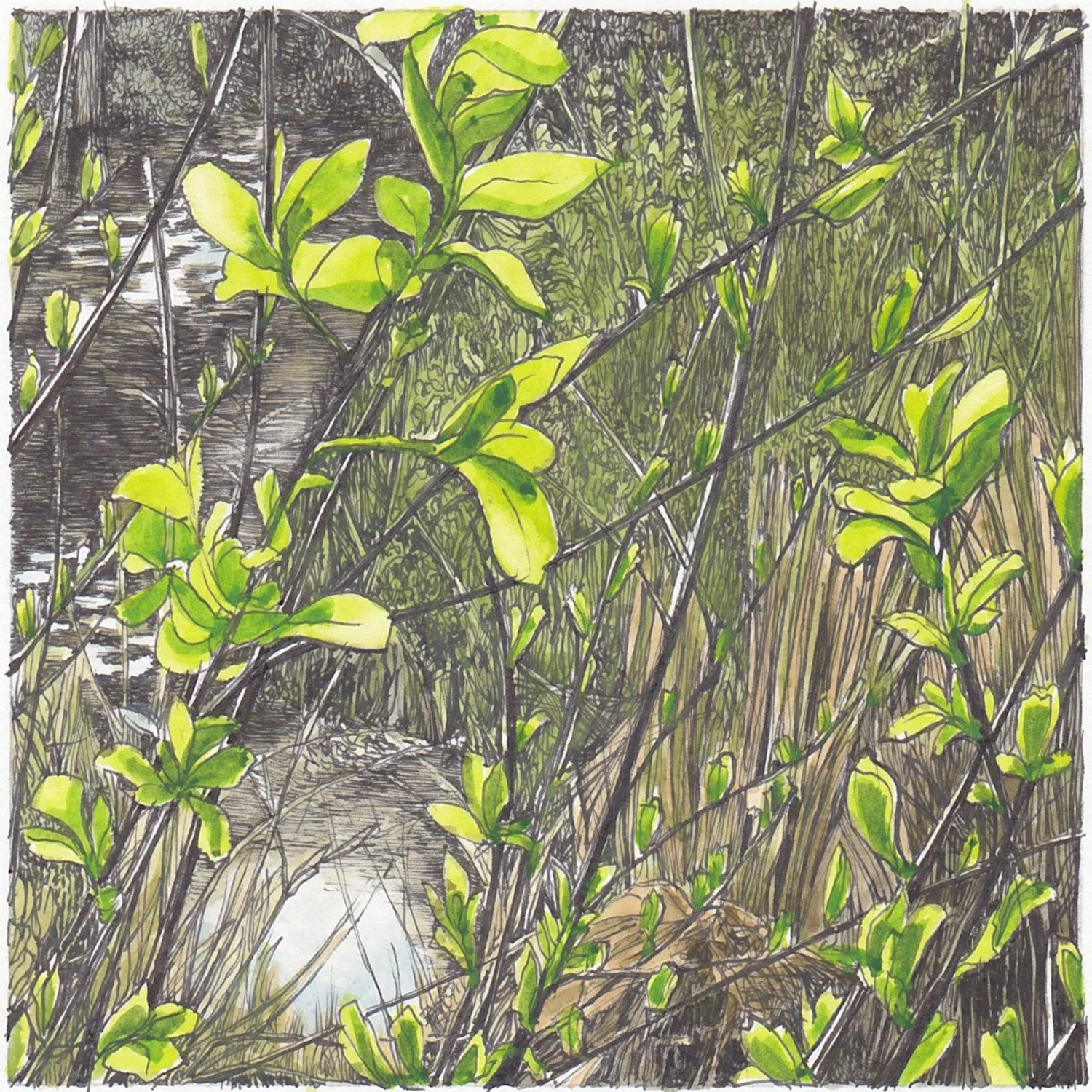 Four Seasons greeting cards The four cards - one for each season - are taken from pen and wash drawings Summer Autumn Spring Winter Cards are on sale at FolksyClick on icon to go directly to the shop